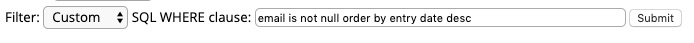 After selecting a filter, press the Submit button at the bottom of the page. After the page is submitted, the "Show filter SQL" link, which is displayed below the Filter menu, will display the portion of the SQL WHERE clause that will be used to enforce the filter. This can be useful when a filter is not producing the desired result.
