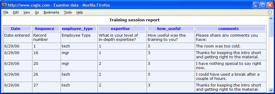 When the questionnaire saves data in its own table ( see Options / Save ), and the report uses the Table format, the Allow modifying selected records option is available.