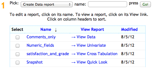 A report can be created from this page as well by picking the report to create, giving the report a name and pressing Go.